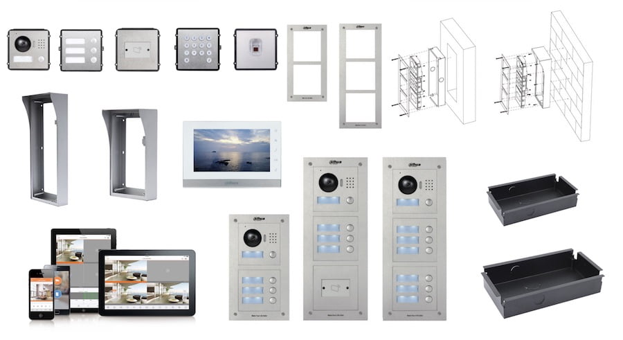 De kabels voor het onderling verbinden van de intercom modules en de RJ-45 verloopkabel voor VTO2000A-C zijn inbegrepen bij de VTOF002.