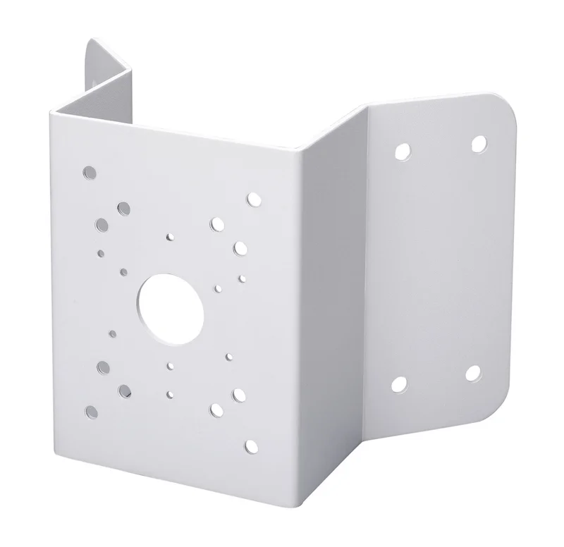 De Dahua PFA151 is een witte hoekbeugel die gebruikt kan worden in verschillende montage configuraties.