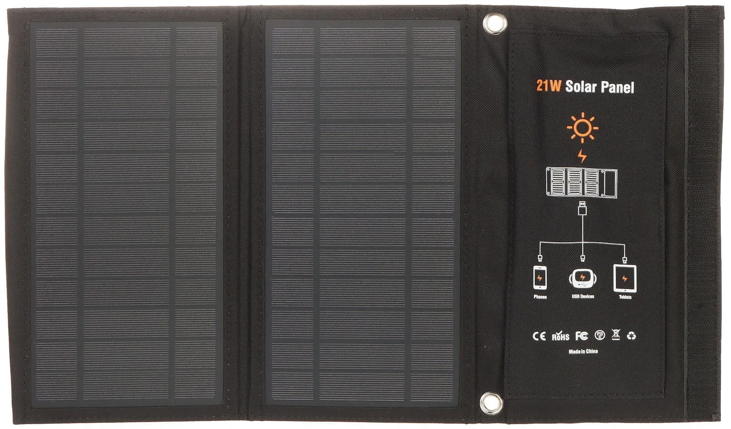 The collapsible and lightweight design of the panel makes it very convenient to carry. Simply connect the devices to the USB ports and place the solar panel in a sunny spot. The panel is therefore a great solution for powering and charging equipment with a USB interface (smartphones, tablets, game consoles, wireless headphones, MP3 players, cameras, power banks) at the campsite, during long mountain hikes.