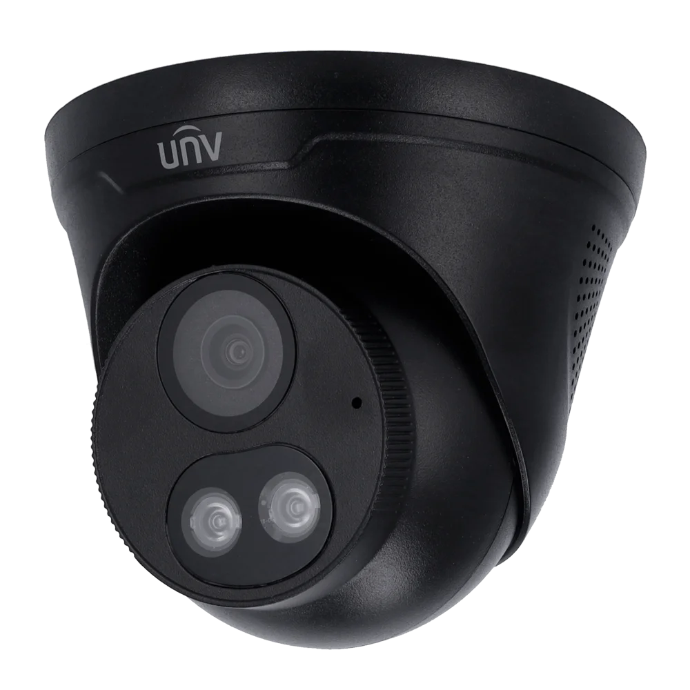 De Uniview IPC3614LE-ADF28KC-WL-B is de zwarte variant van de Uniview IPC3614LE-ADF28KC-WL. De beveiligingscamera is een zeer compacte Full HD 4 megapixel vandaalbestendige turret camera met 30 meter IR nachtzicht en wit LED, ingebouwde microfoon en speaker, 120dB WDR, PoE en een vaste lens van 2.8 mm. De camera is geschikt voor binnen of buiten. Er kan in de camera een microSD kaart worden geplaatst voor opname tot 128Gb (microSD niet meegeleverd).