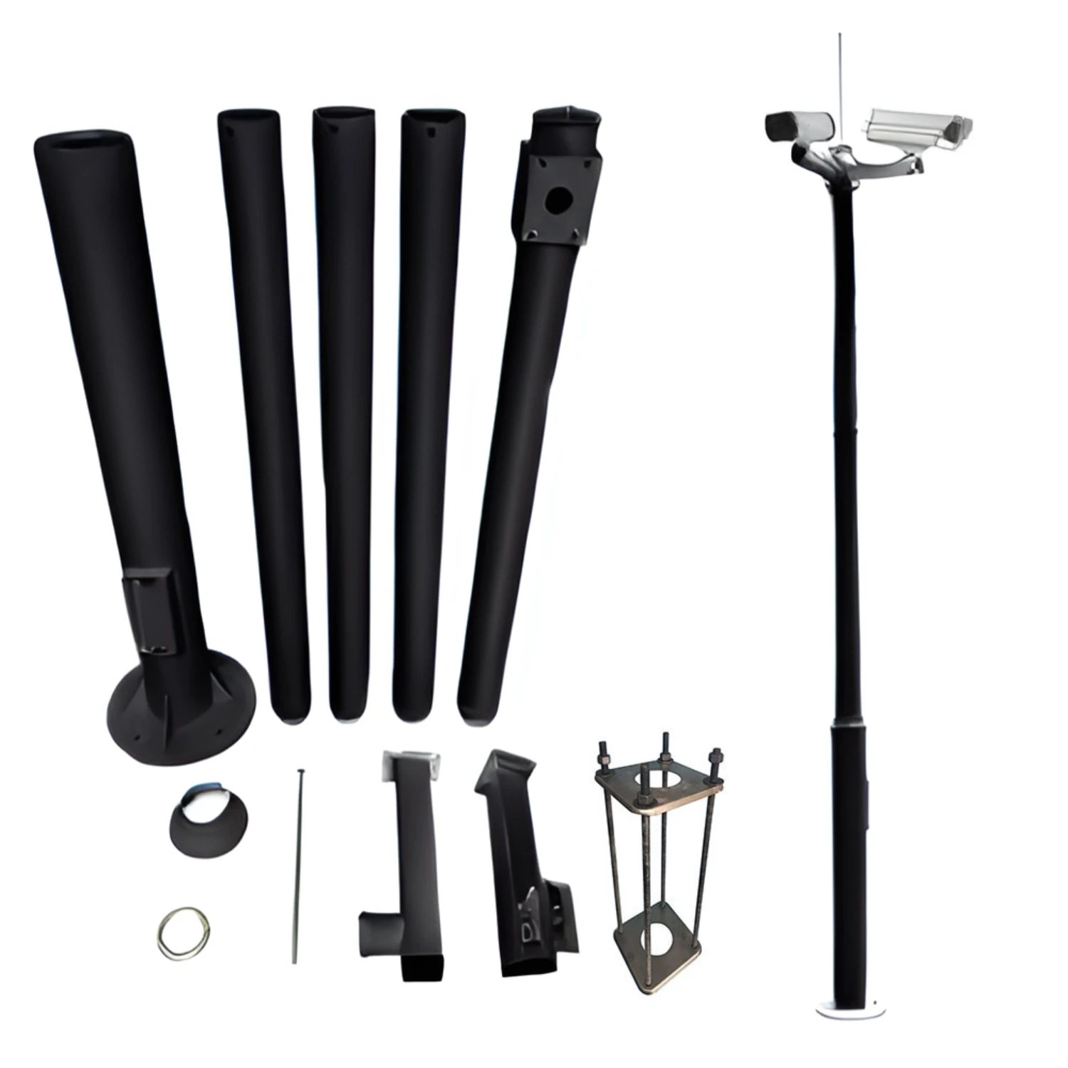WL4 CP60-B zwarte camera paal 6 meter universeel in onderdelen kit voor zelfbouw met grondanker en camerasteunen